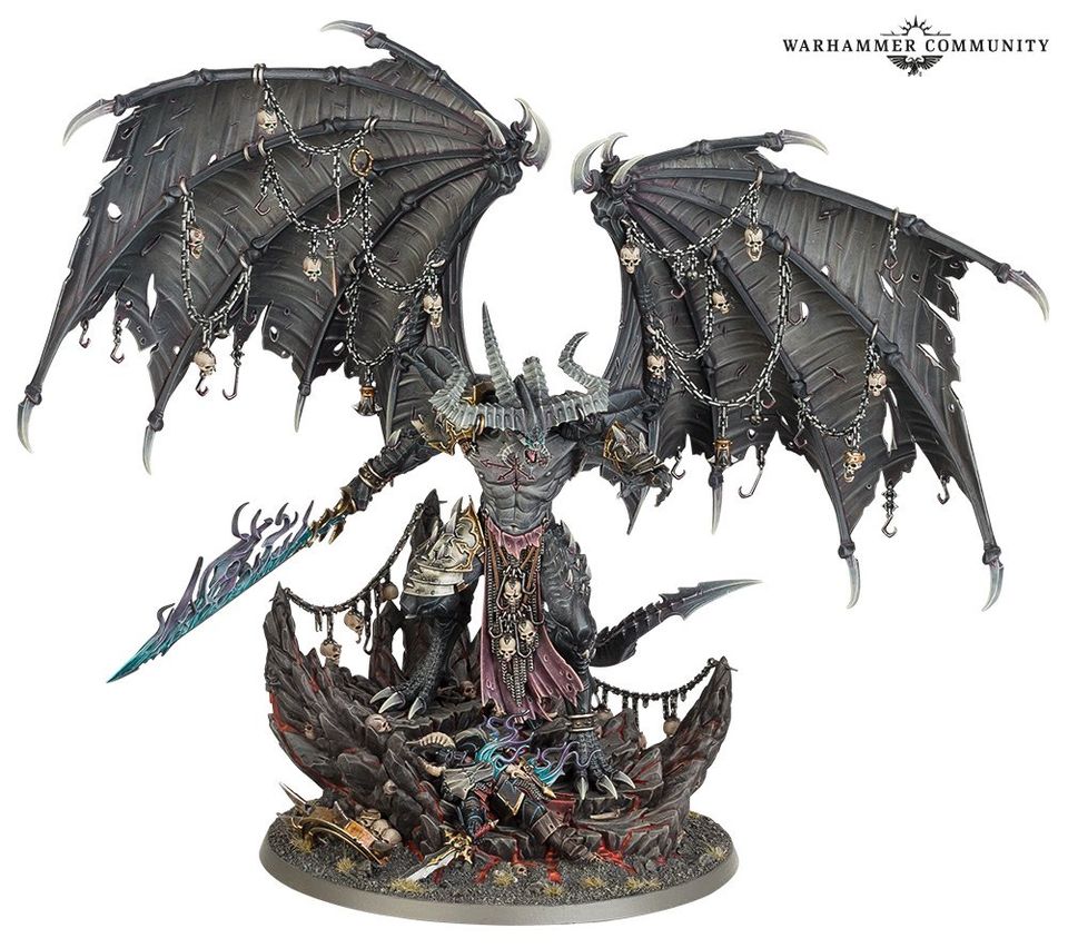 Lange wurde er erwartet, doch nun hat Games Workshop "Be’lakor" den Dämonenprinz des Ungeteilten Chaos vorgestellt. In seiner neuesten Gestallt , schaut er um längen Imposanter aus, als sein Vorgänger Modell, welches zugegebener maßen auch schon in die Jahre gekommen war. Wie es sich für einen echten Dämonenprinz gehört, wird er sowohl in Warhammer 40k als auch in Age of Sigmar Verwendung finden. Daher kommt er natürlich auch mit einer entsprechenden "Wechselbase" für die unterschiedlichen Systeme.