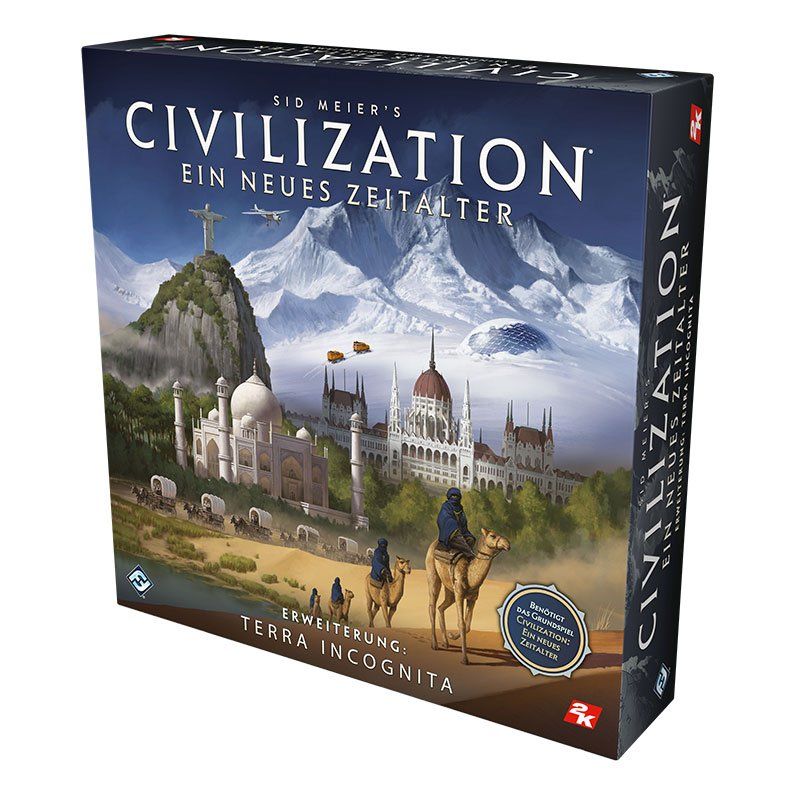 Die Erweiterung Civilization – Ein neues Zeitalter: Terra Incognita von Fantasy Flight Games ist vollgepackt mit neuem Material und neuen Möglichkeiten, die die Grenzen eurer Zivilisation erweitern. Mit Terra Incognita habt ihr jetzt die Möglichkeit, eure Umgebung zu erkunden, neue Landschaften zu erforschen und das Spielbrett während des Spiels dynamisch zu gestalten. Eure Städte entwickeln neue Bezirke, die euch neue Fähigkeiten ermöglichen. Neue Regierungsformen bieten euch Vorteile, und der Kampf wird mit weiteren Armeen neu definiert. Zehn neue Anführer ermöglichen euch außerdem, die spielbaren Zivilisationen zu verdoppeln. Mit Terra Incognita können jetzt bis zu fünf Spieler ihre eigenen Zivilisationen aufbauen und neue Gebiete entdecken, damit wird die Erweiterung eine unverzichtbare Ergänzung für Civilisation: Ein neues Zeitalter!