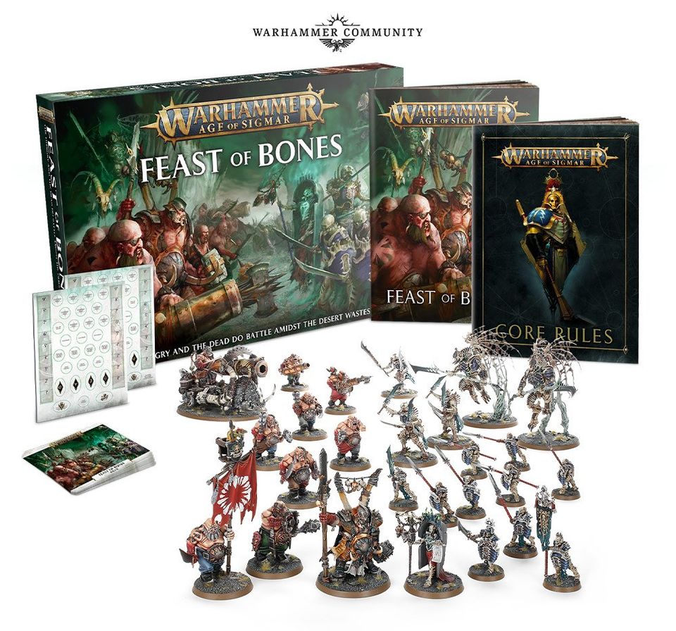 Games Workshop hat 2 neue Armeen für Age of Sigmar angekündigt, die Ogor Mawtribes und die Ossiarch Bonereapers. Beide Armeen erscheinen zum ersten mal in der "Feast of Bones" Box (150€) Zusätzlich kommen noch passende Battletomes und Geländestücke.